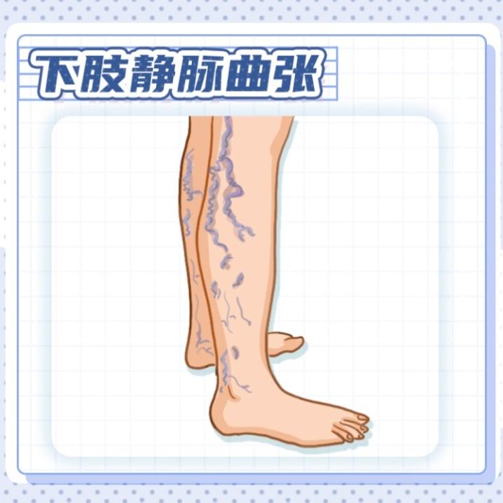 静脉曲张一开始可能只是腿上出现像“蜘蛛网”一样的毛细血管扩张,慢慢的,浅静脉会越来越明显,扩张迂曲成青紫色或暗红色,鼓在皮肤表面像蚯蚓一样。除了这些看得见的变化,腿上还会有不少不舒服的感觉:站久了就觉得腿又沉又累,酸胀得难受;有时候曲张的静脉周围会有烧灼感或者刺痛感;严重一点的话,从脚踝到小腿可能会出现水肿。
