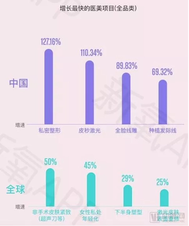 其实,不光是处女膜修复手术,整个女性私密整形的市场都处于高速增长的阶段。2018年,女性私密整形是增长最快的医美项目。