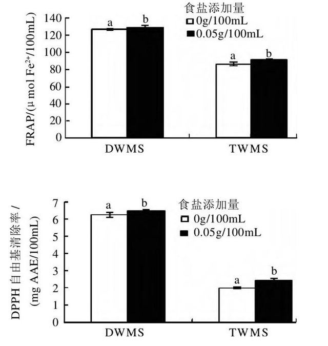 ▲图:食盐对绿豆清汤抗氧化活性的影响