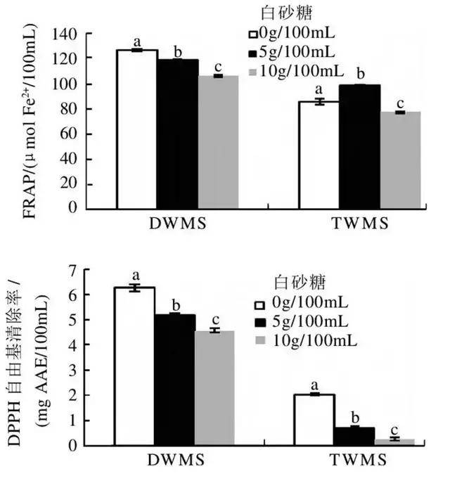 ▲图:白砂糖对绿豆清汤抗氧化活性的影响