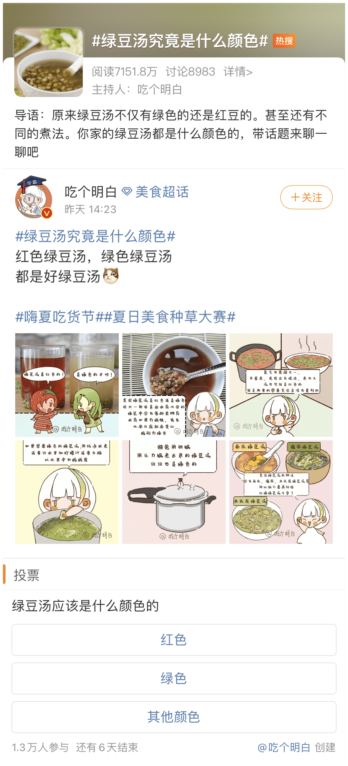 不过,就是这碗平平常常的绿豆汤,最近还因为颜色上了热搜!很多人才发现,自己喝了这么多年都没认真看过,绿豆汤究竟是绿的还是红的?除了颜色,围绕绿豆汤的很多说法比如常喝能“解毒”、肠胃不好的人少喝为妙……我们今天就来聊一聊这些关于绿豆汤的小纠结。