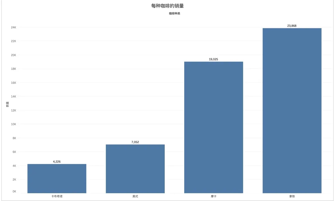 通过前面的步骤,再添加上数量标签,选择整个视图,可以得到所有城市每种咖啡的销量