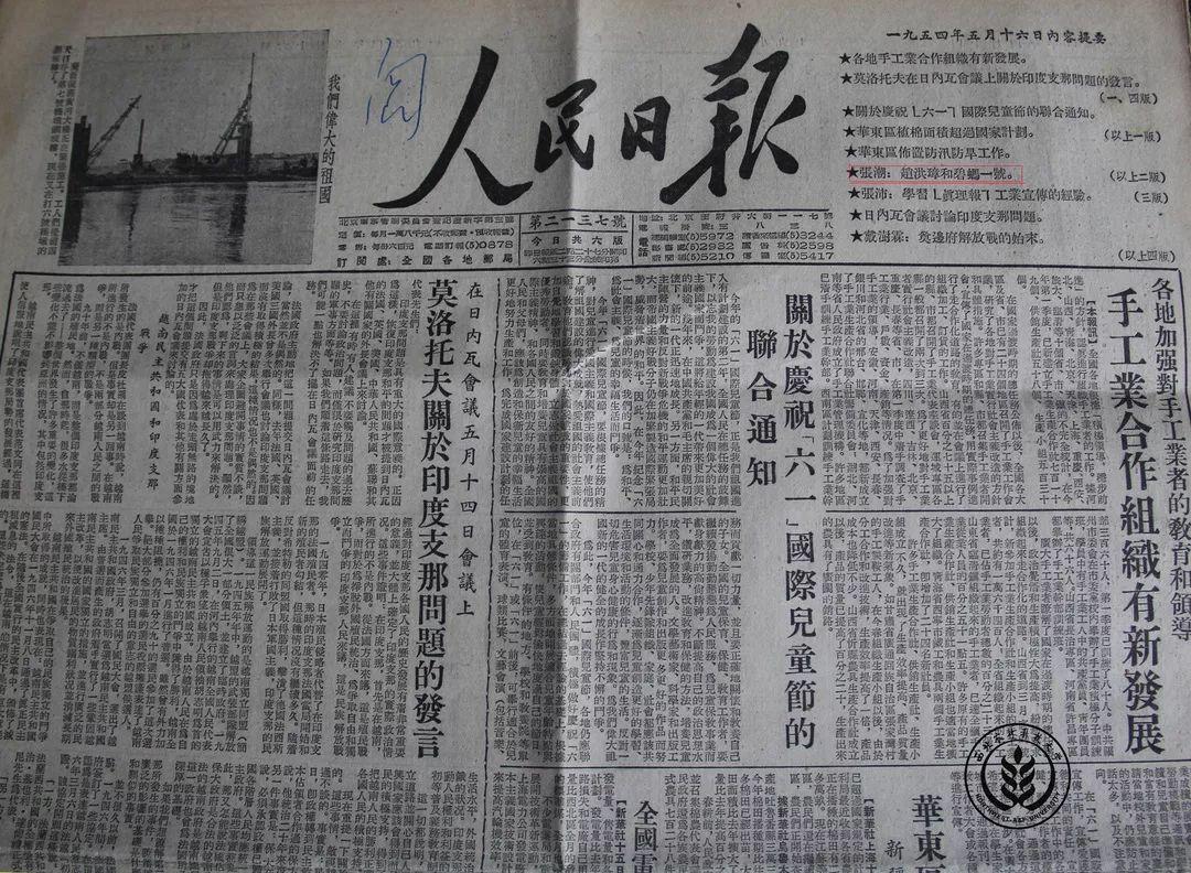 1954年,《人民日报》刊登《赵洪璋与碧蚂1号》