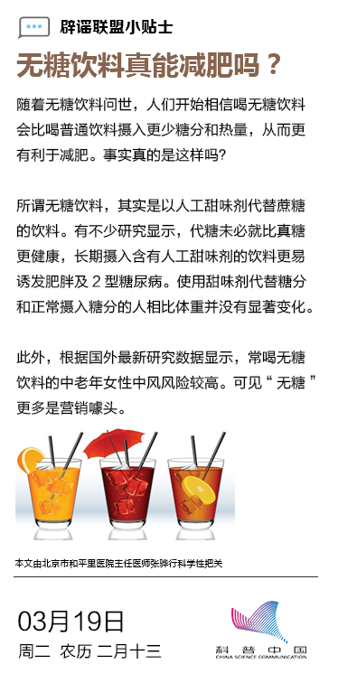 [今日真相]无糖饮料真能减肥吗?科普中国网 2019-03-20 |