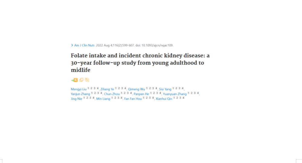 青年叶酸不足,中年肾脏受累!30年研究发出健康警示