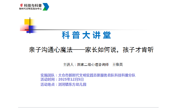 亲子沟通心魔法--家长如何说孩子才肯听科普讲座