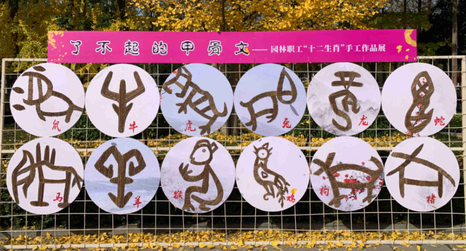 见过各种材料做成的十二生肖,见过枯枝做成的十二生肖吗?随秋风飘落而下的枯枝败叶,经过一番巧思安排、变废为宝,成为一组十二生肖甲骨文。在郑州市文博广场,用枯枝做成的《了不起的甲骨文》主题展览