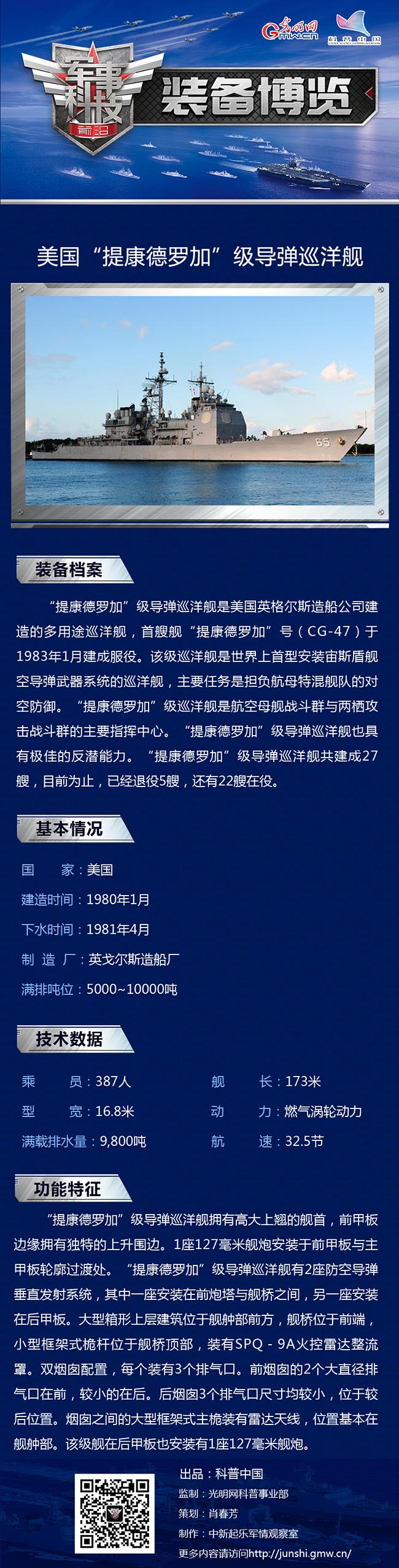 “提康德罗加”级导弹巡洋舰:以“宙斯盾”作战系统为核心的军舰科普中国-军事科技前沿 2018-09-03 |