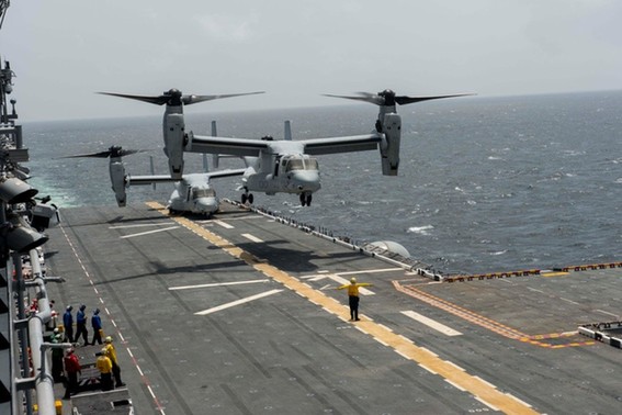 “美国”级两栖攻击舰在设计时取消了坞舱,当然也就没有搭载气垫登陆艇。此外,用于交通运输的下甲板也取消了。这样在移除可浸没井甲板后,“美国” 级在机库甲板上扩充了两个较宽的高舱区,每个高舱区都装备有用于飞机维修的起重机。取消坞舱的LHA6两栖攻击舰的机库长度大幅增加了42%,其理想的舰载机编组模式为12架MV-22B飞机、4架CH-53“海马”直升机、2架SH-60S直升机、4架AH-1“超眼镜蛇”攻击直升机、3架UH-1“休 伊”直升机以及6架F-35B战斗机。当然,根据任务可搭载20架F-35B和2架SH-60S,火力全开。