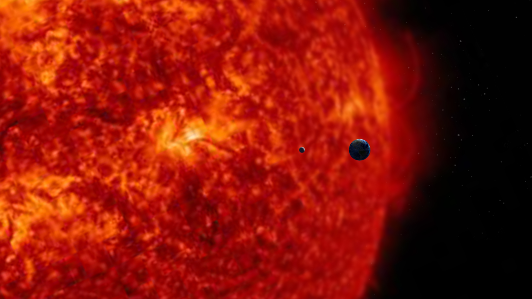 更奇特的是,有时地球会与月球相邻,有时会分别横跨在太阳的两端——这是百年不遇的天文盛景。