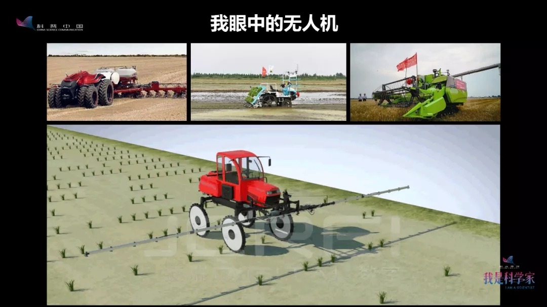 到今天,地面的无人机系统已经非常智能了。农业生产中各种各样的无人机系统,它们可以耕地,可以插秧,可以收割,可以打药……打药过程中,它甚至能够做到哪里有病虫害、哪里有杂草我就打哪里,不需要的地方我就不打。