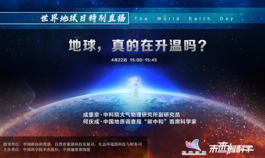 4月22日,由中国科协科普部指导、中国科学技术出版社承办的科普中国-未来耀科学“世界地球日”特别直播,将邀请6位科学家,对此进行全面解读。还将介绍最具科技感的“碳捕捉”和“地球工程”脑洞计划!