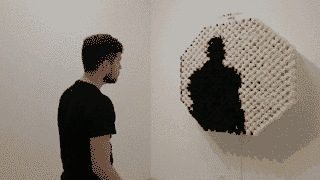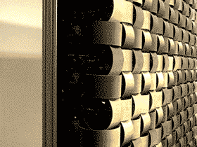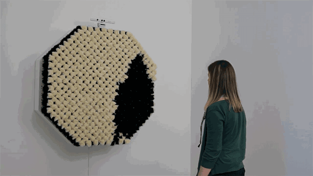 这个看起来像纸卷墙的东西,其实是由768个层压C型版画、电机、定制软件和微型控制器组成的一面“镜子”。