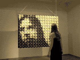 由500个垃圾碎片构成的“镜子”,通过光纤的明暗变化来产生镜子的效果。