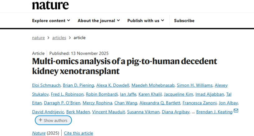《Nature》发布重磅研究:首次详细描绘异种猪肾移植的免疫反应“路线图”