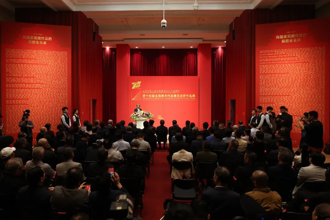 第十四届全国美术作品展览是庆祝中华人民共和国成立75周年重要文化活动之一,也是学习实践习近平文化思想系列活动之一。展览分为两个阶段,第一阶段在13个分展区展出4814件作品,第二阶段在中国美术馆和中国国家博物馆展出686件进京作品。其中,中国美术馆展出中国画、油画、版画、雕塑、水彩画(含粉画)、年画、宣传画、漫画(含故事漫画、独幅漫画)、连环画(含儿童图画书)、插图以及港澳台、海外华人作品。展览聚焦新时代主题,浓墨重彩抒写中国式现代化建设的伟大实践,生动描绘百姓的幸福生活,充分展现了近年来我国美术事业发展的丰硕成果。