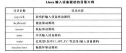 Linux内核源码为一些常用的输入设备提供了驱动源码。这些源码分别在目录下的多个子目录下,这些子目录的内容如下表所列。