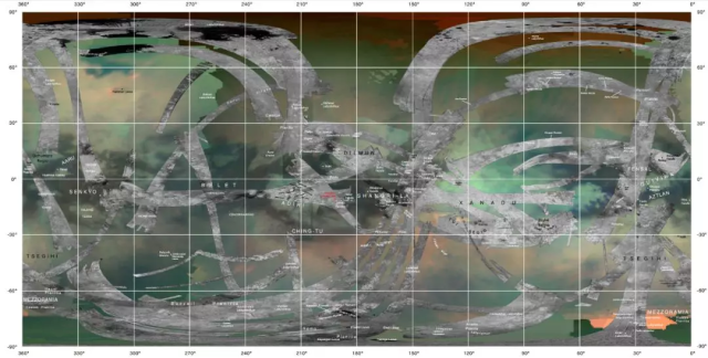 例如,通过筛选某些波段的光,科学家们早在2016年就已经获得了土卫六的全球反照率(也就是亮暗)地图,并为土卫六上许多重要地貌命了名。