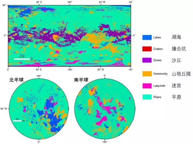 所以,首先要对土卫六上不同类型的地貌进行分类。