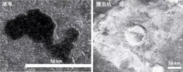 撞击坑、山地丘陵、平原和湖海是我们比较熟悉的地貌了,地球上就有挺多。只不过,土卫六的湖海里流动的并不是地球上的液态水,而是液态的碳氢化合物(下面我们都用甲烷代表)。