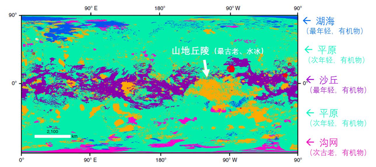 首张土卫六全球地质图。编译自:参考文献[1]
