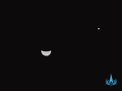 27日,北京航天飞行控制中心飞控团队与中国航天科技集团试验队密切配合,控制天问一号探测器在飞离地球约120万公里处回望地球,利用光学导航敏感器对地球、月球成像,获取了地月合影。