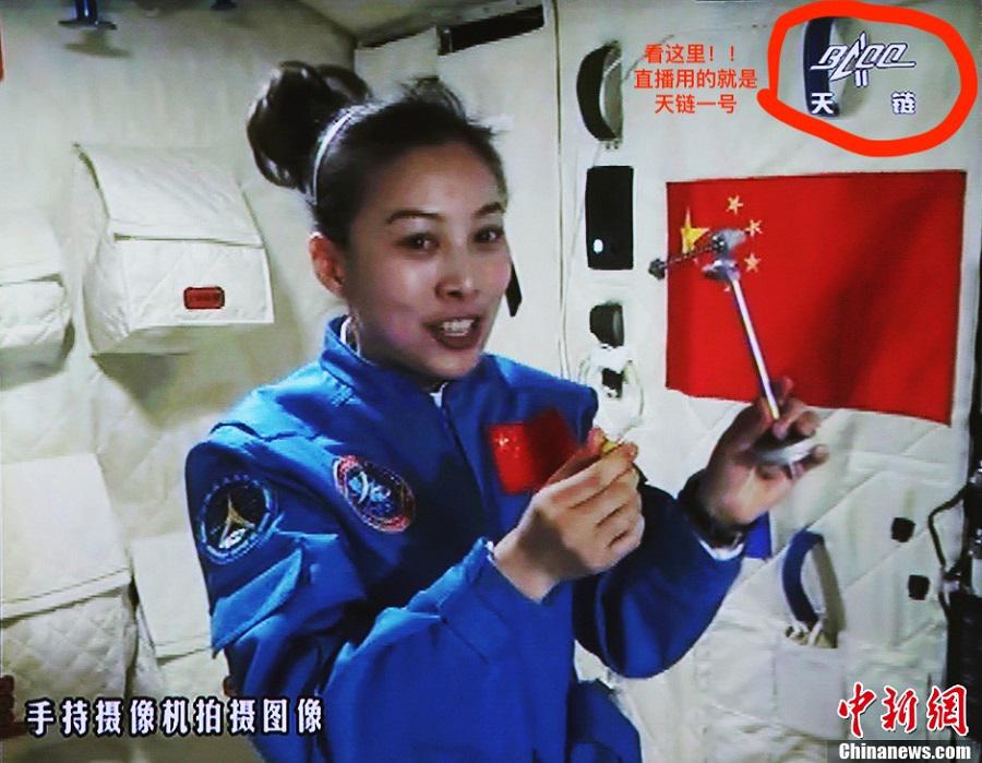 王亚平授课是通过天链一号系统(图片改编自中新网)