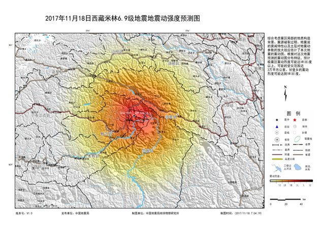 米林地震烈度推算图