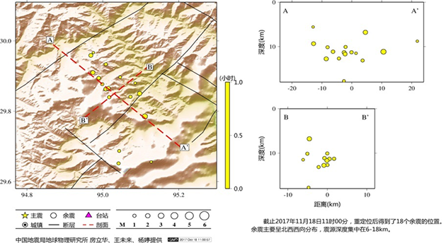 米林地震余震分布图