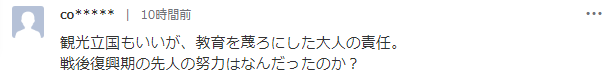 日本只作为旅游国家也可以,这是轻视教育的国人的责任。战后为复兴奋斗的那些人的努力都去哪了?