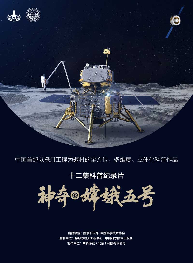 《神奇的嫦娥五号》由国家航天局、中国科学技术协会联合出品,探月与航天工程中心、中国科学技术出版社监制,中科海镁(北京)科技有限公司制作,是中国首部以探月工程为题材的全方位、多维度、立体化科普作品。