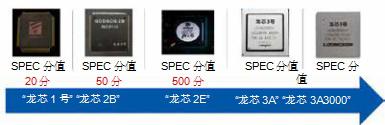 “龙芯 1 号”的主频是 266 兆赫,于 2002 年起使用。“龙芯2 号”最高主频为 1 吉赫,“龙芯 3 号”于 2010 年推出产品,是一款多核心 CPU 芯片。从“龙芯 1 号”到“龙芯 2B”,性能提高 3 倍,到“龙芯 2C”又提高 3 倍,再到“龙芯 2E”,又提高3 倍,发展速度是摩尔定律的 4 倍以上。从“龙芯 1 号”到“龙芯 3A3000”,SPEC CPU 标准程序测试结果表明,“龙芯”CPU的性能提高了 120 倍。